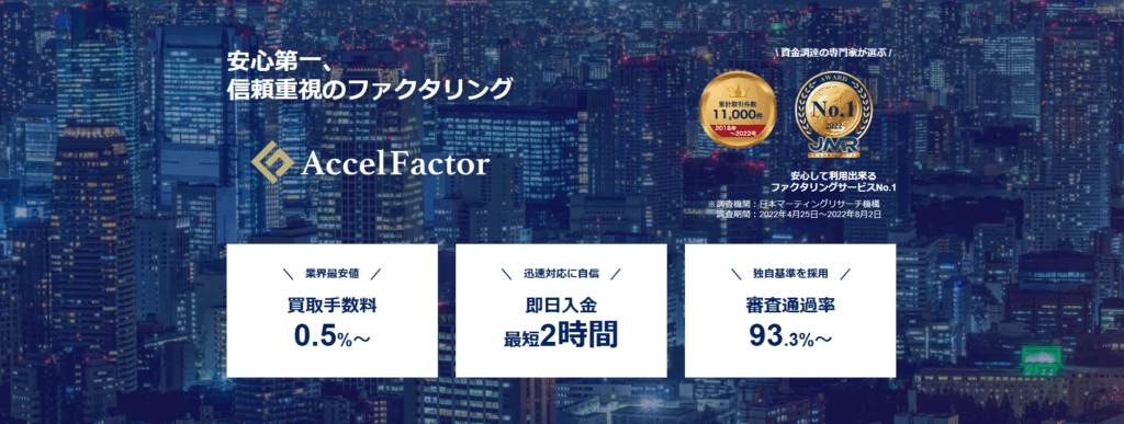 補助金の交付決定から実際の入金までの“つなぎ資金”としてファクタリングを活用する際には、安心して利用できる業者選びが重要です。そんな中、アクセルファクター社は、特に中小企業・個人事業主を対象に「スピード・柔軟性・オンライン対応」を掲げたサービスを展開しています。
